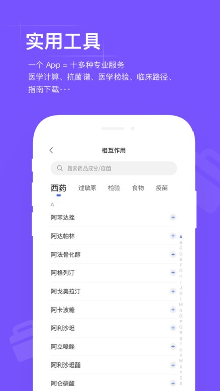 实用工具:相互作用、配伍禁忌、医学计算、医学检验、临床路径、抗菌谱查询等,临床决策更高效,支持自定义常用工具收藏;