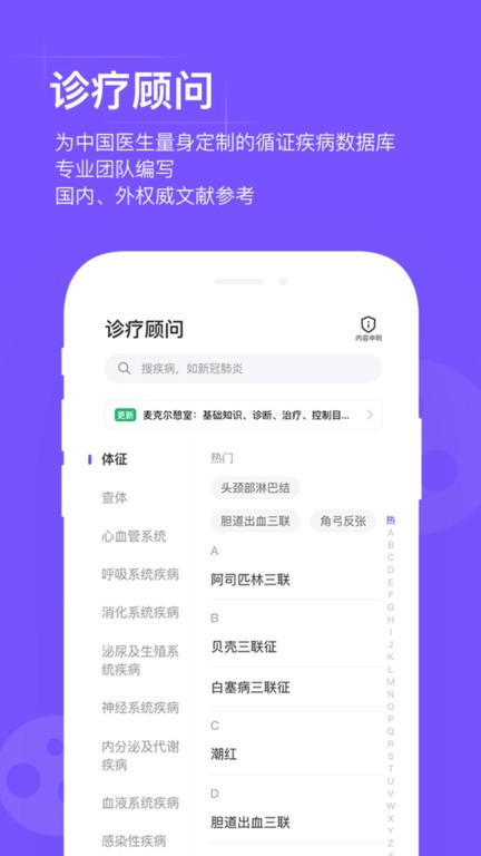 疾病信息:收录近万种临床疾病的介绍、治疗方案信息,包含罕见病诊疗方案;