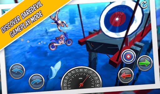 创新的摩托车物理引擎带来真实驾驶手感,玩家需要通过倾斜设备控制车身平衡,在飞跃时还要精确计算起跳角度和落地时机。