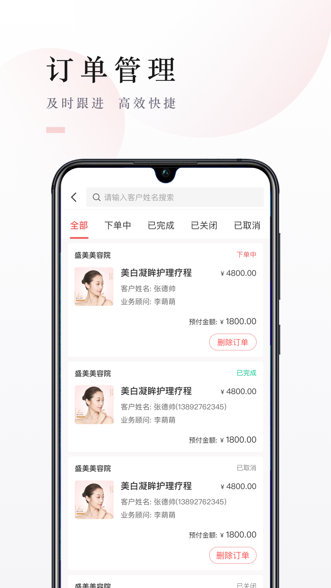 1、订单管理系统让您能够实时跟踪客户订单状态,从下单到完成全程可视化,支持快速处理订单信息,提高服务响应速度。2、项目管理功能支持一键录入各类美容项目,可自定义项目分类和标签,便于精准管理和快速查找。3、作为专业的公司信息管理工具,疯享美商家版还提供数据分析报表,帮助企业主掌握经营状况,做出更明智的决策。