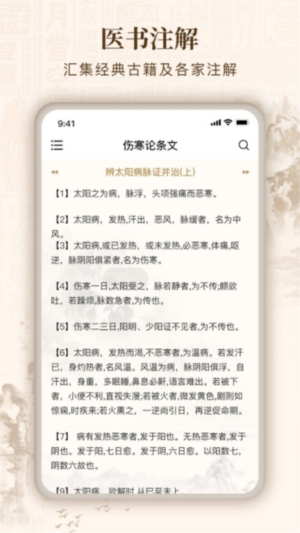 伤寒论查阅通是一款专为中医从业者及爱好者打造的专业工具软件,深度聚焦外感疾病研究领域。该应用系统性地整理了《伤寒论》全本10卷22篇内容,包含398种经典诊疗法则与113个核心药方,构建起完整的六经辨证知识体系。通过智能化的症状分析与病位定位功能,为用户提供精准的诊疗参考依据。软件还整合了经络学说、针灸疗法、本草纲目等11大类中医古籍资源,形成多维度的传统医学知识库,既满足学术研究需求,又能辅助临床实践决策。