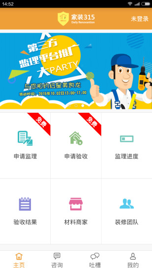 家装315app是由厦门天天家装科技网络有限公司精心打造的一款专业装修监管服务平台。这款软件致力于为业主提供全方位的装修监管解决方案,通过数字化手段让装修过程更加透明可控。用户不仅可以在线获取专业装修咨询服务,还能便捷地申请工程监管和验收服务,实时跟踪装修进度。平台整合了装修团队筛选、材料选购、质量验收等核心功能,帮助用户规避装修陷阱,确保装修品质。无论是新房装修还是旧房改造,家装315都能为您提供专业可靠的一站式服务。