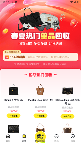 在主页面选择你的回收选项例如包袋、腕表、首饰、珠宝、黄金、配饰、服装、名酒等