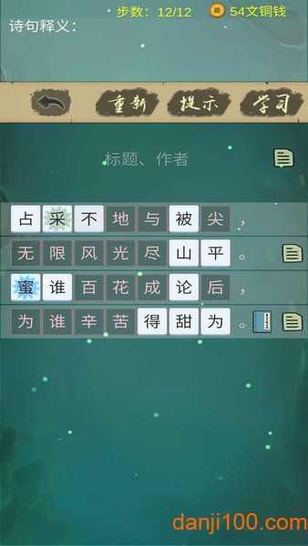 口袋诗词是一款独具匠心的古诗词解谜游戏,它将中国传统文化与现代游戏机制巧妙融合。游戏采用关卡制设计,包含从启蒙到进阶的数百个诗词谜题,每道题目都经过专家精心筛选。玩家需要通过诗句填空、词句重组、意境匹配等多种形式完成挑战,系统会根据答题准确率和速度给予星级评价。随着关卡深入,题目难度会逐步提升,但贴心的提示系统和丰富的道具储备能帮助玩家渡过难关。游戏还设有每日挑战和限时活动,让学习过程充满新鲜感与成就感。