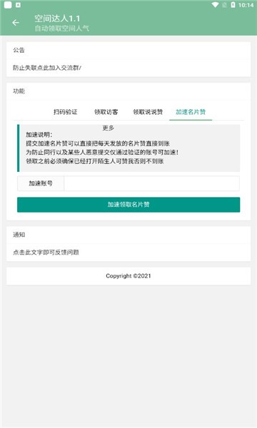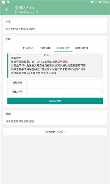 空间达人手机版是一款专为QQ空间用户设计的智能互动工具,旨在帮助用户轻松提升空间活跃度与社交影响力。通过其高效的互赞系统,用户能够一键获取更多点赞与关注,让个人空间焕发活力。无论是想要增加曝光率的新手,还是希望维系好友关系的老用户,这款软件都能提供便捷的解决方案。其人性化的设计与多样化的功能,让QQ空间互动变得简单有趣,是提升社交体验的绝佳助手。