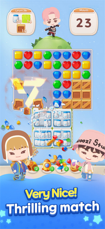 创新性加入连击评分系统和道具组合技,高手可挑战三星完美通关。每周更新的主题关卡会结合SEVENTEEN最新回归概念设计特殊消除元素。
