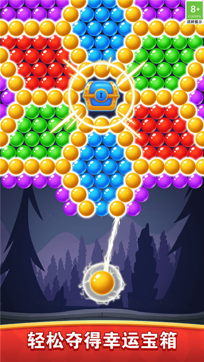 玩家需要利用发射台操控不同颜色的泡泡,精准射击并消除屏幕上的泡泡,当所有泡泡都被消除时,便可以成功过关。游戏操作简单直观,只需滑动屏幕即可调整射击角度。