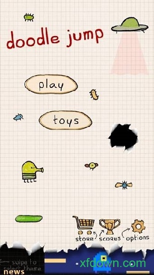 在涂鸦跳跃中,玩家通过精妙的倾斜控制引导Doodler进行一场轻快的冒险,在涂鸦风格的世界里收集喷气背包,躲避黑洞,用鼻球消灭沿途的坏人。游戏还支持将实际得分标记在页边,让玩家可以与朋友一较高下。但要提醒的是:这是一款极其容易上瘾的游戏。