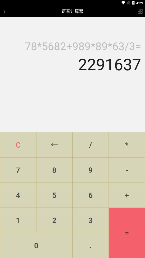 计算器安卓版app是一款界面简洁大方的手机计算工具,集成了丰富实用的计算功能,能够轻松解决用户日常生活中遇到的各种计算难题。无论是简单的加减乘除,还是复杂的房贷计算、单位换算等,这款语音计算器都能快速准确地完成计算任务。操作简单直观,输入流畅便捷,让计算变得更加高效省心。同时,软件体积小巧,运行稳定,无广告干扰,为用户提供纯净舒适的计算体验。