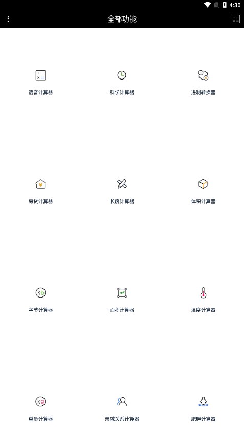 点击左上角菜单按钮,可以查看更多专业计算功能,包括科学计算、房贷计算等;