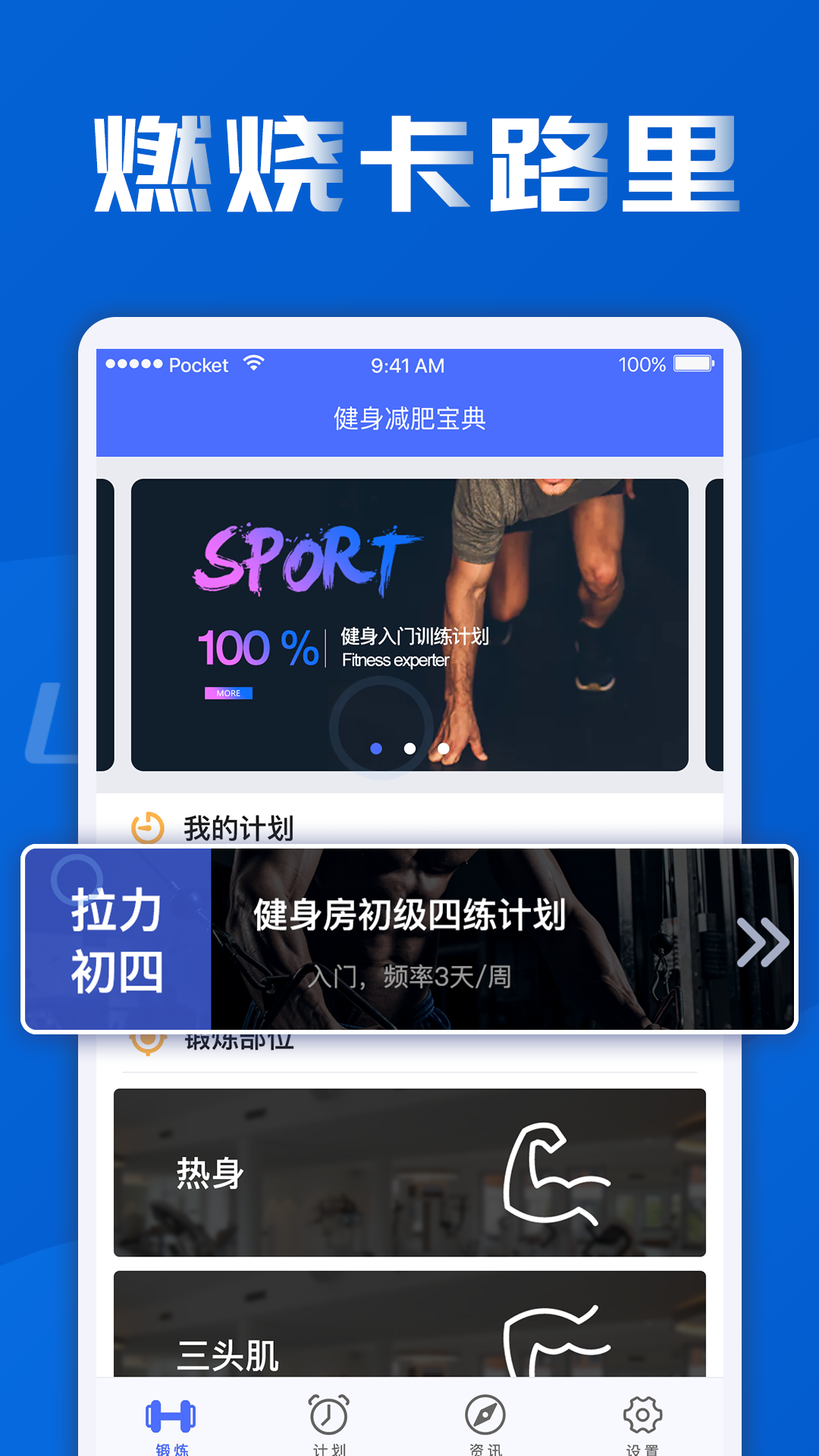 健身减肥宝典帮你:根据用户场景、健身目的、有无器械编排各种训练计划,4分钟也可以完成一次健身训练:即使是午休时间也能高效锻炼。所有均配有视频,标准的动作演示和精确的语言描述带你快速入门:确保初学者也能轻松掌握要领。权威健身专家把控内容,为每个人制定科学的健身计划:避免运动伤害,最大化训练效果。热门城市有趣的跑步路线图,让跑步更有:发现城市最美跑步路线,增添运动乐趣。每天上下班如果可以,选择跑步、骑行、步行的出行方式,用APP实时记录运动量,轻松完成当天的运动目标:将通勤变成健身时间,一举两得。只需一个APP即可将健身、跑步、骑行、计步数据通通记录,全面了解你的运动数据:生成详细的数据分析报告,追踪进步轨迹。