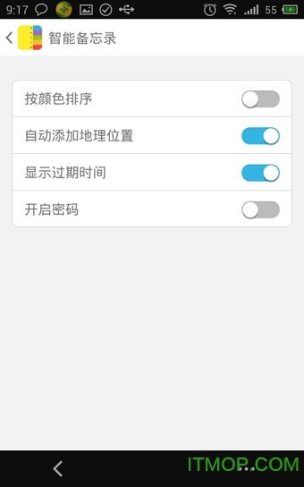 智能手机版是一款功能强大的手机备忘录应用,专为现代人的高效生活而设计。它不仅可以帮助您记录日常琐事和工作任务,还能通过智能提醒功能确保您不会错过任何重要事项。应用界面简洁美观,操作直观便捷,支持多种个性化设置,让您的生活和工作更加井然有序。无论是会议安排、生日提醒,还是购物清单,这款备忘录都能完美胜任,成为您生活中不可或缺的得力助手。现在就前往IT猫扑下载,开启高效生活新体验!