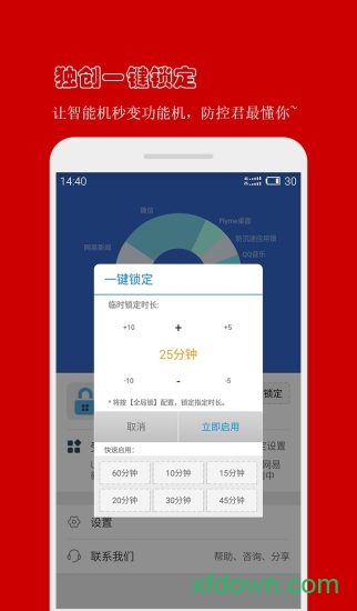 3.一键锁定功能可瞬间将智能手机转换为基础功能机,过滤干扰专注工作学习;