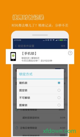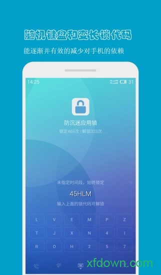 2.智能随机键盘和可变长度锁代码设计,每次解锁都需要专注操作,潜移默化减少解锁频率;