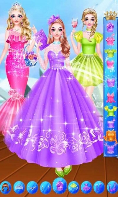 给公主化精致的妆容,换上漂亮的衣服。游戏提供了丰富的化妆品和服饰选择,从眼影到口红,从连衣裙到高跟鞋,你可以自由搭配,打造独一无二的造型。