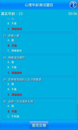 《心理年龄测试》是一款专为现代人设计的趣味心理测评应用,通过科学严谨的心理学模型,帮助用户探索内心真实的心理年龄状态。不同于简单的娱乐测试,该软件融合了专业心理学量表与生活化场景,能准确评估用户的成熟度、情绪管理能力和处事风格。无论是想了解自我,还是希望改善人际关系,这款应用都能提供有价值的参考。特别适合职场人士用于自我提升,也常被年轻人用作社交破冰工具,在轻松有趣的测试过程中,发现不为人知的另一面自我。