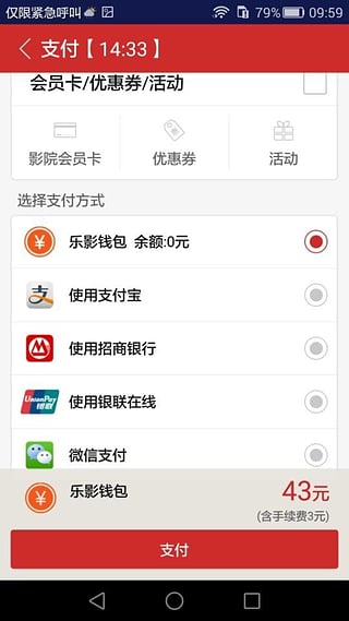 兼容性强大的支付系统,同时支持上百家主流影院会员卡在线支付功能,让会员用户享受更多专属优惠和积分福利。