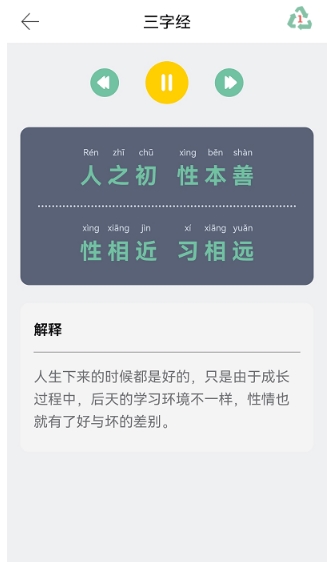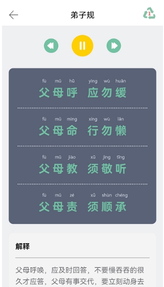 【有声国学三字经和弟子规12合1最新版】软件亮点: