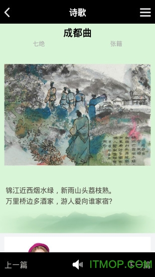 唐诗宋词app是一款功能全面的诗词学习工具,不仅收录了唐诗宋词中的经典作品,还包括元曲、明清诗词以及现当代优秀诗作。每首诗词都配有详细的作者介绍、创作背景和赏析点评,帮助用户全方位理解诗词内涵。应用界面简洁大方,分类清晰,支持按朝代、作者、题材等多种方式检索,让用户能够快速找到心仪的诗词作品。此外,应用还提供诗词收藏功能,方便用户建立个人诗词库。