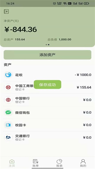 【资产管理】全面整合各类资产账户,包括12家主流银行的储蓄卡、信用卡,以及支付宝、微信钱包等电子账户。智能生成资产负债报表,净资产变动趋势图让您随时掌握财务健康度。
