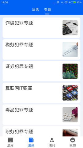 2、诈骗、税务、互联网等犯罪专题分类清晰,用户可根据兴趣或需求深入学习,掌握相关法律要点。