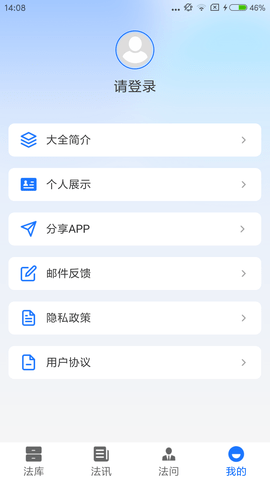 1、下载并安装大予刑法大全APP后,用户需注册账号并登录,即可进入软件首页开始使用。