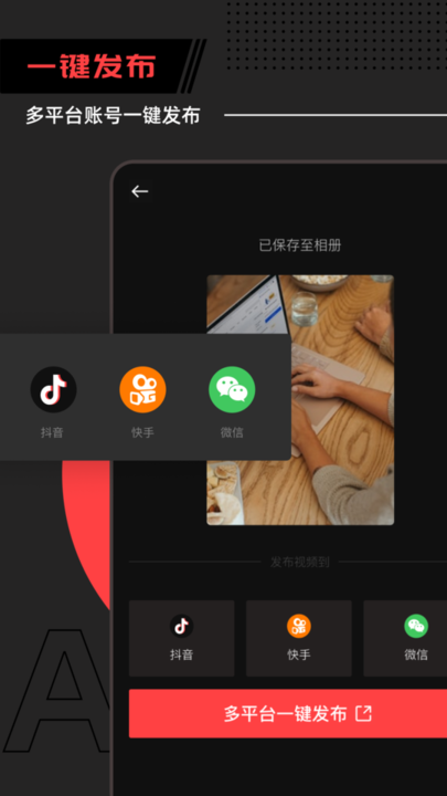 多平台账号整合功能强大,目前已支持主流短视频平台账号绑定,剪辑完成后可直接发布至抖音、快手等热门平台。
