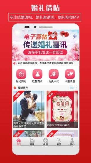 增加时尚简约、欧韩西式、中式或浪漫等婚礼请柬模板,满足不同新人的审美需求;