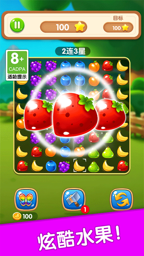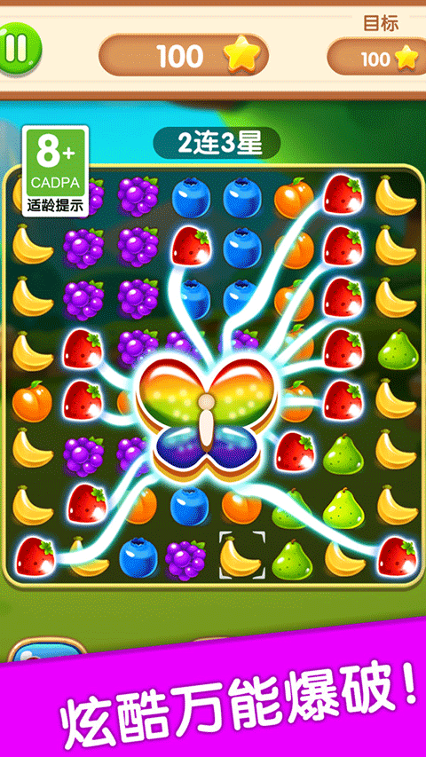 3、史上最可爱最可爱的水果配对游戏,经典的三消游戏,多种意想不到的效果,惊喜无穷。定期更新的内容保证游戏始终保持新鲜感,让玩家每次打开都有新发现。
