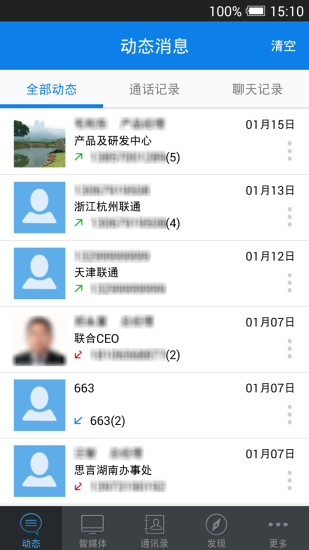 站点成员来去电时,显示头像、姓名、职务、单位和归属地,辅助记忆,沟通轻松和谐。丰富的来电显示信息帮助用户快速识别来电者身份,避免尴尬的"你是谁"开场白,让商务沟通更加专业得体。