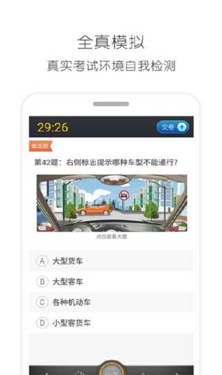 全真模拟:采用全真题库,真实再现理论考试场景,配合路考视频教程,让学习更高效,考驾照更轻松。模拟考试环境完全仿真,帮助用户消除考试紧张感。
