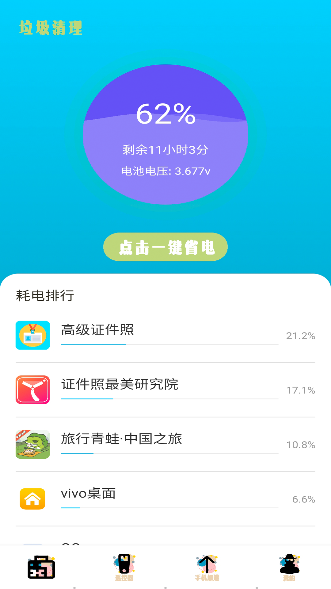 3、一键加速,提高运行速度,清理垃圾,一键操作,释放内存空间,特别针对低配置手机进行优化,效果显著。