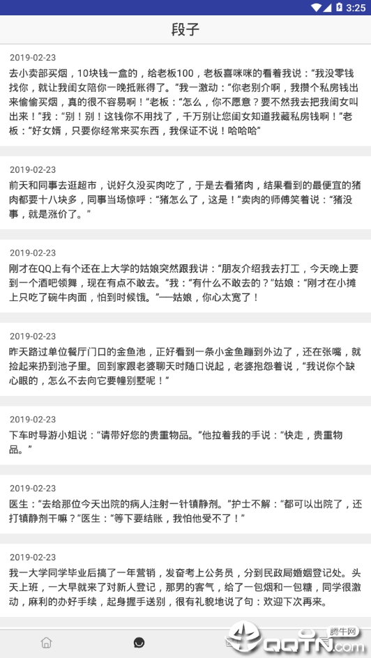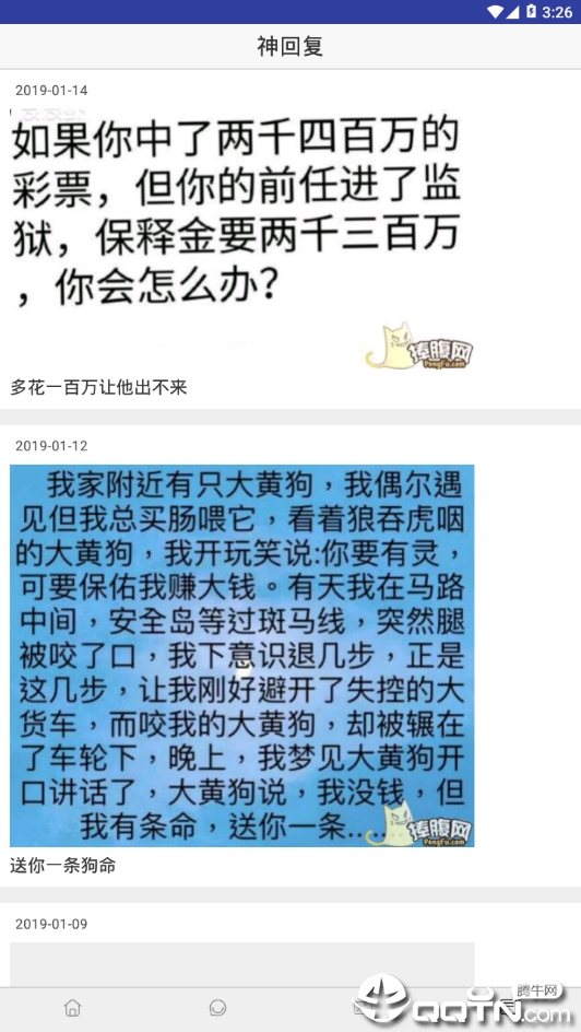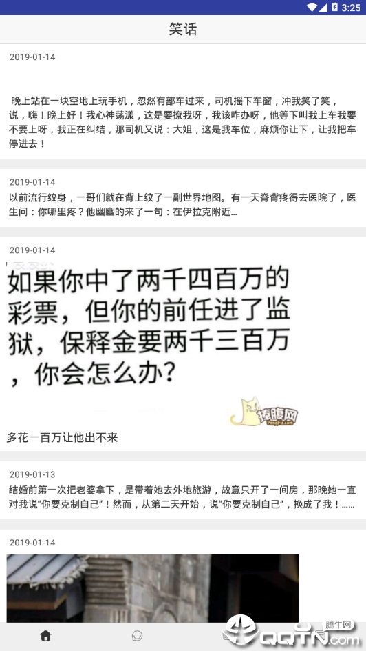 每天时时更新笑话、动态图、段子、冷笑话、冏人冏事等幽默内容,个个经典,让你的生活更有味道!更新内容经过严格筛选,确保每个笑话都能戳中你的笑点,告别无聊的等待时光。