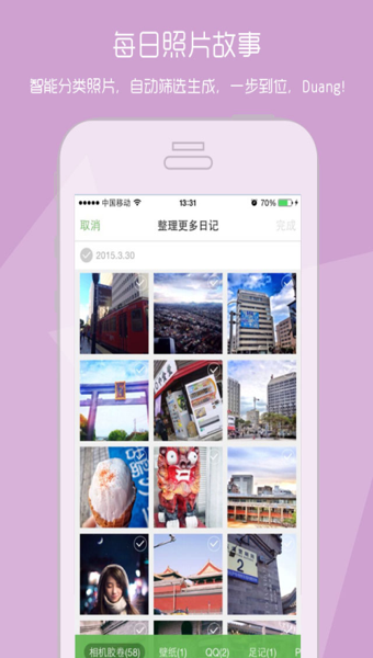 丰富滤镜,一键分享:自带相片滤镜功能,收获美图不再难,粗暴。让你晒,晒美景,晒得更加自信!内置30+专业级滤镜和编辑工具,支持亮度、对比度、饱和度等参数微调,让普通照片秒变大片。更可直接分享到微信、微博等社交平台,让更多人欣赏你的旅行作品。
