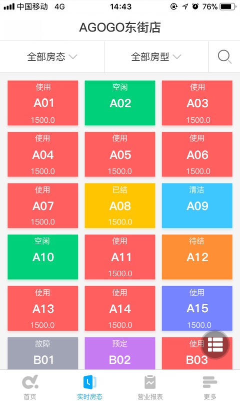 房态:实时房态监控功能让管理者对包厢使用情况一目了然,包括空闲、使用中和预定中等多种状态显示,支持按区域、楼层等多维度筛选查看。