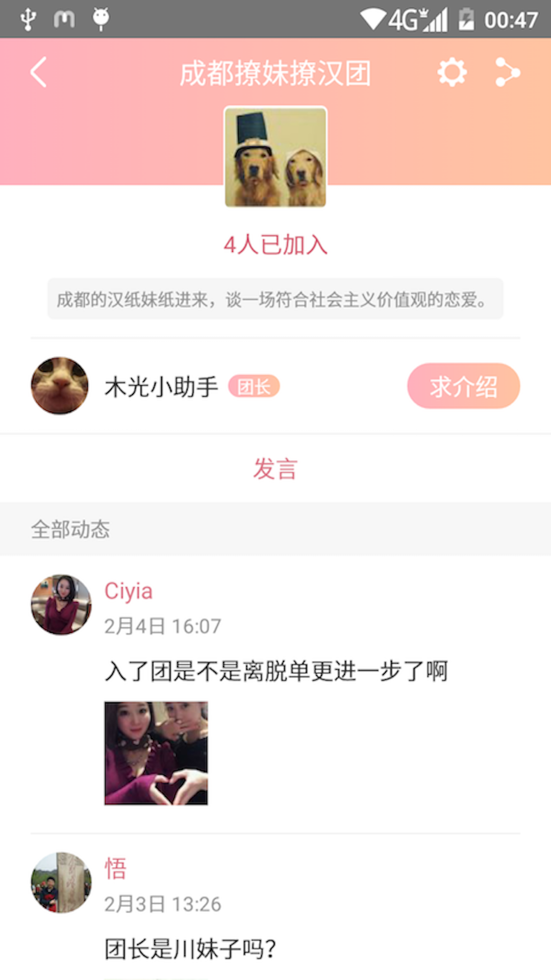 单身团增加个人发言功能,现在你可以更自由地表达自己的想法,与团内成员进行深入交流。