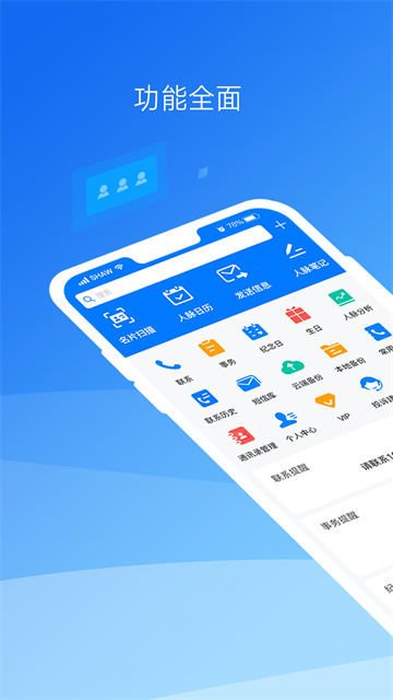 智能化的人脉管理中心,配备多种实用小工具图标,可快速对联系人资料进行编辑、备注等个性化管理;