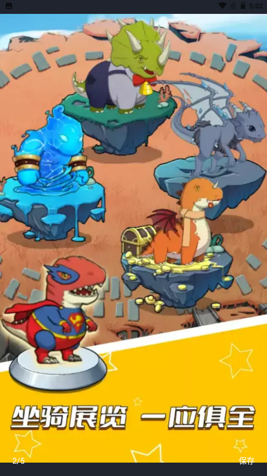 1、游戏采用清新明亮的卡通画风,场景设计精致细腻,恐龙造型可爱生动,战斗特效炫酷华丽,为玩家带来极佳的视觉享受。