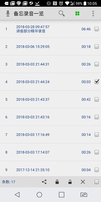 管理录音:提供强大的录音文件管理功能,包括搜索、回放、删除、添加备注、查看详情及分享发送等操作。