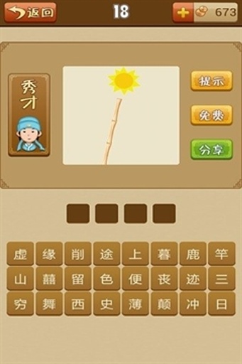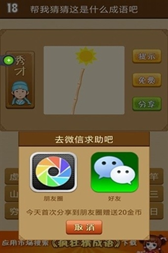 1、通过给定图片,猜出对应的成语;游戏的同时还可以巩固自己的成语知识,何乐不为;