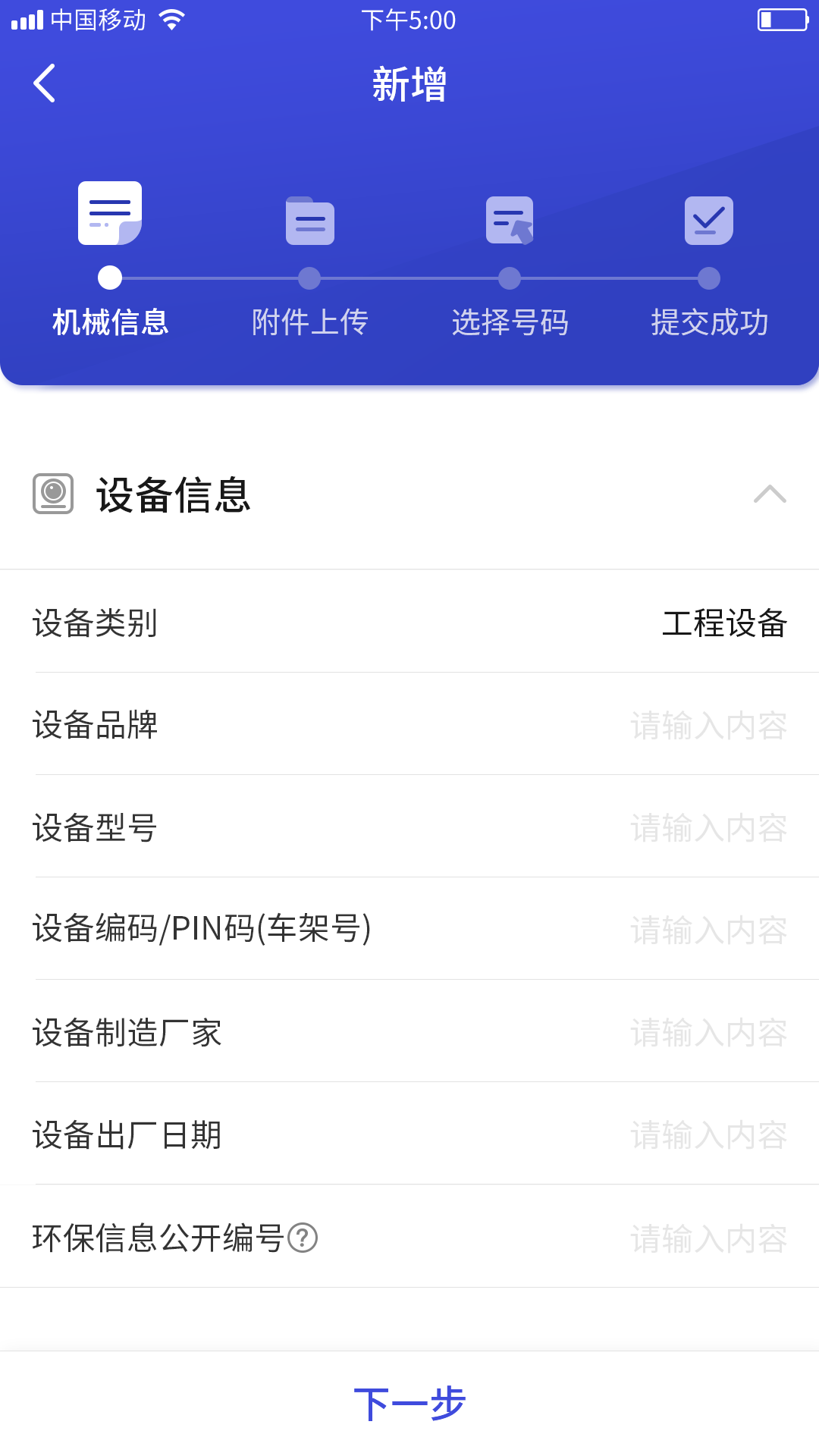 蓝天机械APP积极响应国家环保政策,严格遵循《打赢蓝天保卫战三年行动计划》和《柴油货车污染治理攻坚战行动计划》的要求,为全国非道路移动机械用户提供规范化管理工具。通过数字化手段简化传统备案流程,平台支持机械信息在线填报、审核进度实时查询、电子牌照生成等功能,大幅提升监管效率。同时结合GIS定位技术,可精准追踪设备分布,助力政府部门构建全国联网的机械污染源数据库,为大气污染防治提供数据支撑。