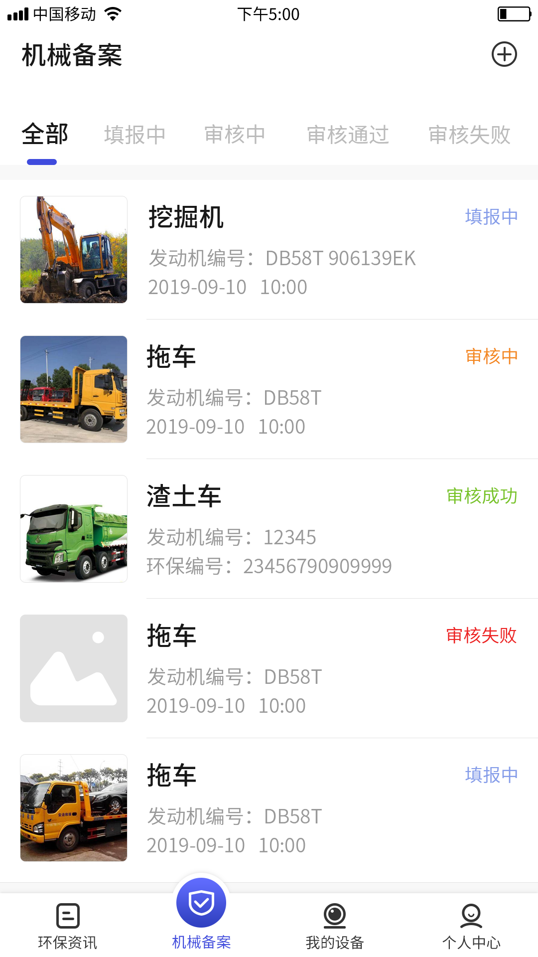 环保资讯板块每日更新国家及地方最新环保法规、行业动态和技术标准,帮助用户及时了解政策风向;机械备案功能提供全流程指导,从资料上传到审核通过最快仅需3个工作日;我的设备模块支持添加多台机械,可查看每台设备的备案状态、年检提醒和维修记录;个人中心整合消息通知、历史记录和客服通道,用户还能在此进行账号安全设置和偏好调整,打造个性化使用体验。