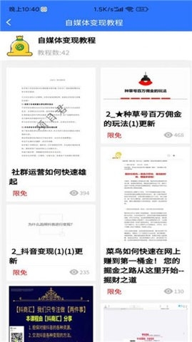 轻松学自媒体,不需要花一分钱,所有教程完全免费。软件打破了传统教育的高门槛,让优质的自媒体教育资源触手可及。用户无需担心经济压力,可以全身心地投入到学习中,真正实现零成本的知识获取。