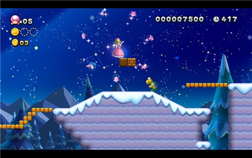 游戏在保留经典关卡的基础上,新增了30%的隐藏关卡和特殊挑战模式,这些关卡需要玩家通过特定条件解锁,大大延长了游戏的可玩时长。2、新增的奇诺比珂和偷天兔两位角色拥有独特技能树,奇诺比珂的浮空二段跳与偷天兔的无敌偷取技能,为关卡攻略带来全新策略维度。3、完整收录原版所有Boss战与隐藏世界,并对经典食人花、库巴Jr.等敌人AI进行智能升级。4、支持最多5人本地联机合作,新增的"合体跳跃"和"道具共享"机制让多人游戏充满欢乐互动,特别适合家庭聚会场景。