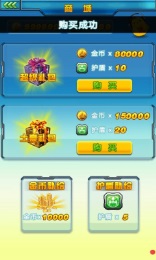 1、游戏破解内购了,进入游戏,购买金币和道具,进入内购界面,点击左上角返回即可购买成功;