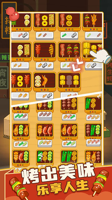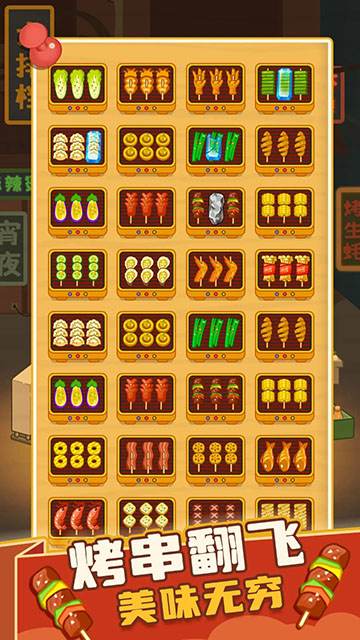 疯狂烧烤摊是一款充满趣味的益智消除类休闲游戏。在游戏中,你将化身为一位烧烤店老板,通过巧妙摆放各种美味烤串来经营自己的小店。游戏的核心玩法简单易上手:只需将三根相同种类的烤串连在一起,它们就会自动消失并获得金币奖励。随着游戏的深入,你可以用赚取的金币解锁更大规模的店铺和个性化装扮,让你的烧烤摊越来越红火。游戏画面色彩鲜艳,烤串种类丰富多样,操作流畅有趣,无论是休闲放松还是挑战高分,都能带来愉悦的游戏体验。快来开启这场别开生面的烧烤经营之旅吧!