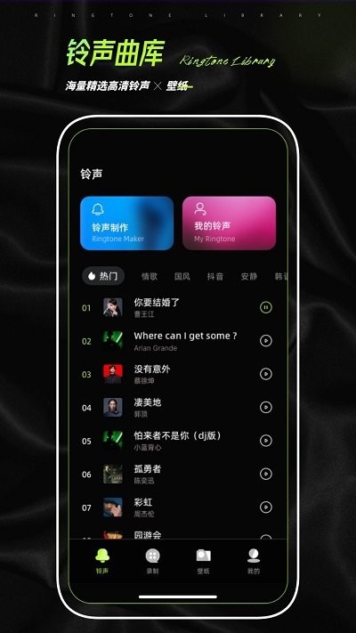 ·在线钤声制作,剪辑你的音乐,设置来电铃声:内置专业级音频编辑器,支持精确到毫秒的剪辑功能,可以自由调整音量、淡入淡出效果,制作出完美的来电铃声。