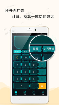 1)支持日常用到的加、减、乘、除等基本运算,比自带的计算器更好用,操作便捷。界面设计符合人体工学,大号按键减少误触几率,让计算过程更加流畅。