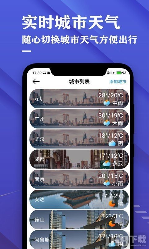 1.实时天气:精确显示当前温度、湿度、风速、气压等多项天气信息,数据每分钟自动更新,确保信息及时准确。