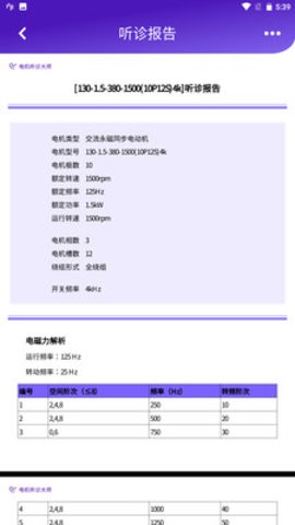 查看听诊报告,全面知道电机类型、运行转速、开关频率等数据信息,报告可添加备注和标签;